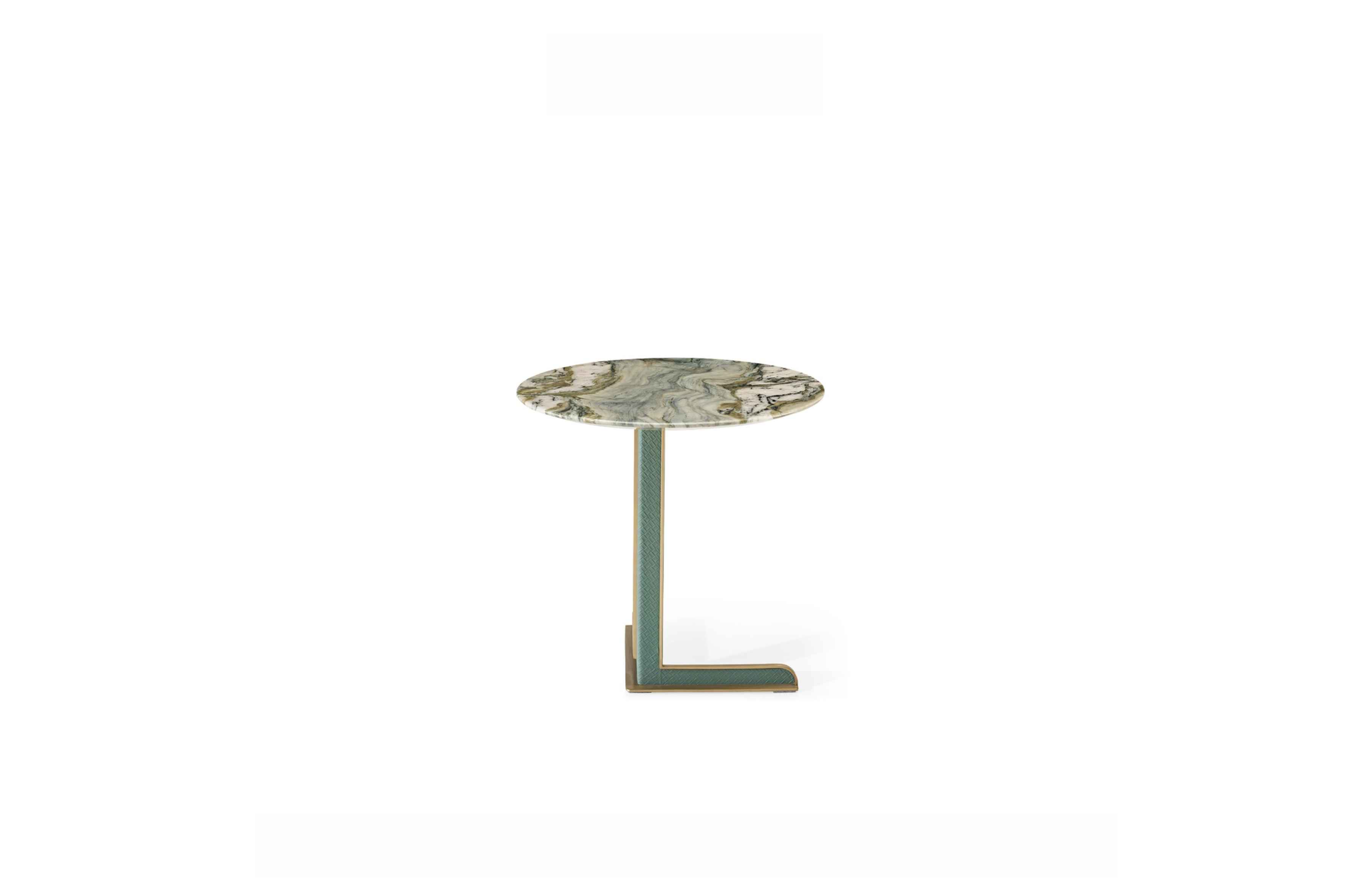 Introducing the APTC-3058 Side Table, a versatile and elegant piece for your living room. Its sturdy metal frame and durable stone surface make it both functional and stylish. Featuring a unique woven design and luxurious faux leather accents, this table adds a touch of sophistication to any space.